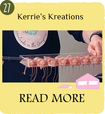 Handmade chocolates using milk, dark or white chocolate including Kerrie’s signature truffles.